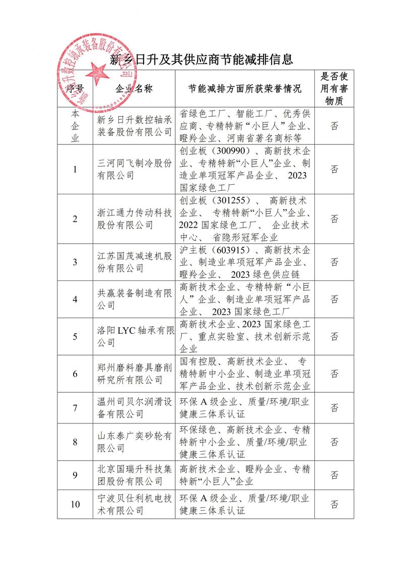 新鄉(xiāng)日升-供應(yīng)商節(jié)能減排信息